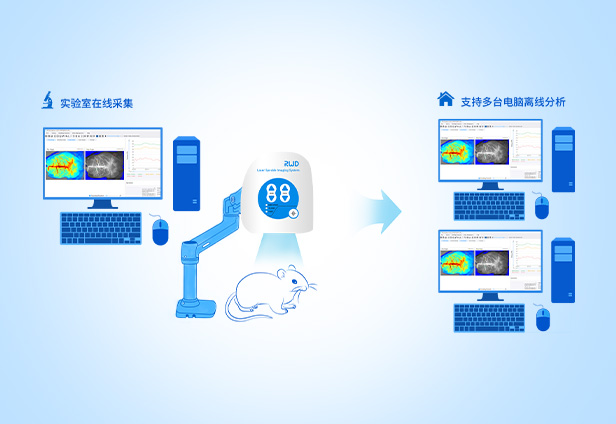 研究者可以在实验室中利用激光散斑血流成像系统进行数据采集,然后讲数据拷贝至个人PC进行数据分析,分析工作不受场地的限制。此外,软件并不限制安装设备的数量,可以多人协同工作。